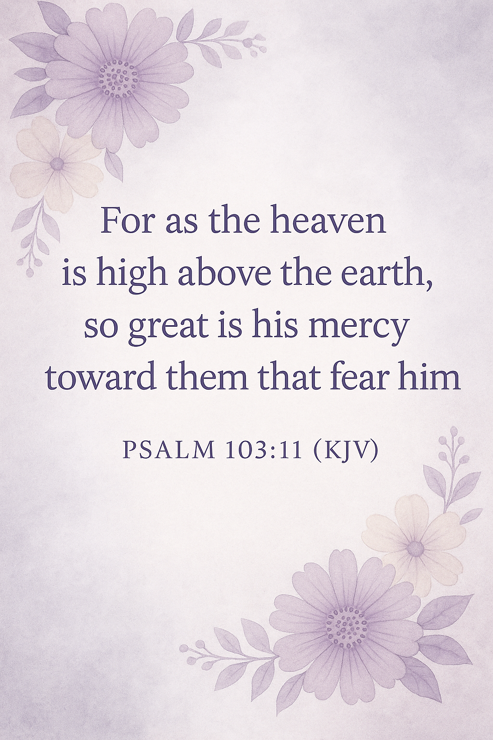 Reflection:There is something so comforting, so humbling, about the mercy of God. His mercy reaches higher than the sky, deeper than our pain, wider than our mistakes, and stronger than anything that comes against us.